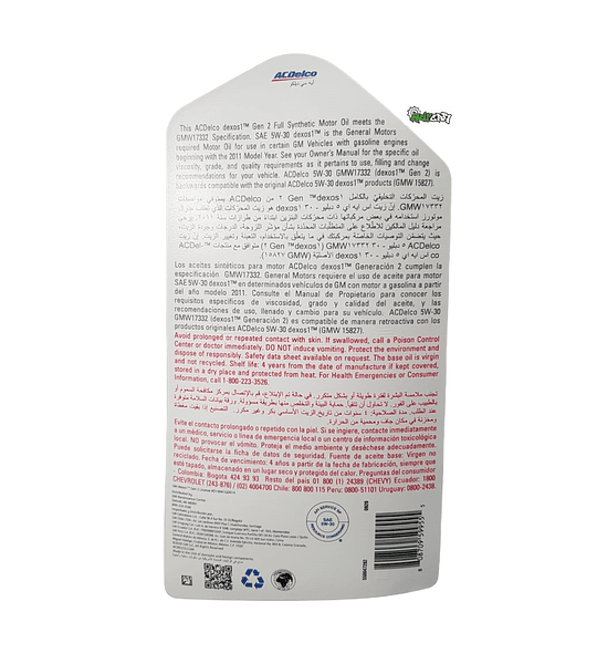 • ACDelco 5W-30 GMW17332(DEXOS1 Generación 2) es compatible de manera retroactiva con los productos originales ACDelco 5w-30dexos1 (GMW 15827).